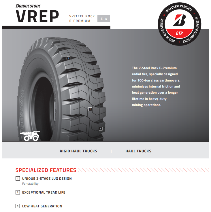 • Suitable for 100-ton rigid dump trucks running at high speeds, which can cause extreme heat buildup inside the tire