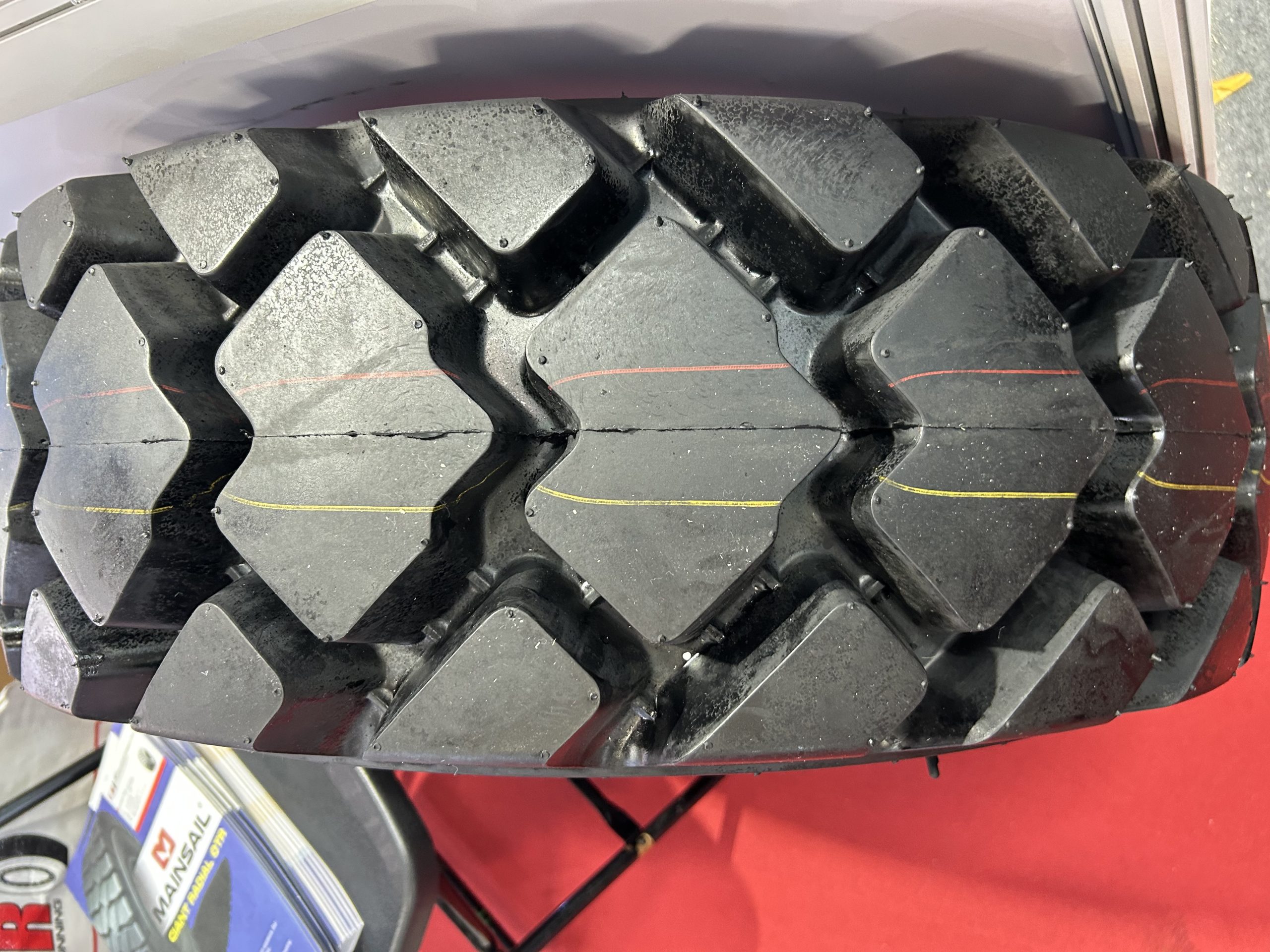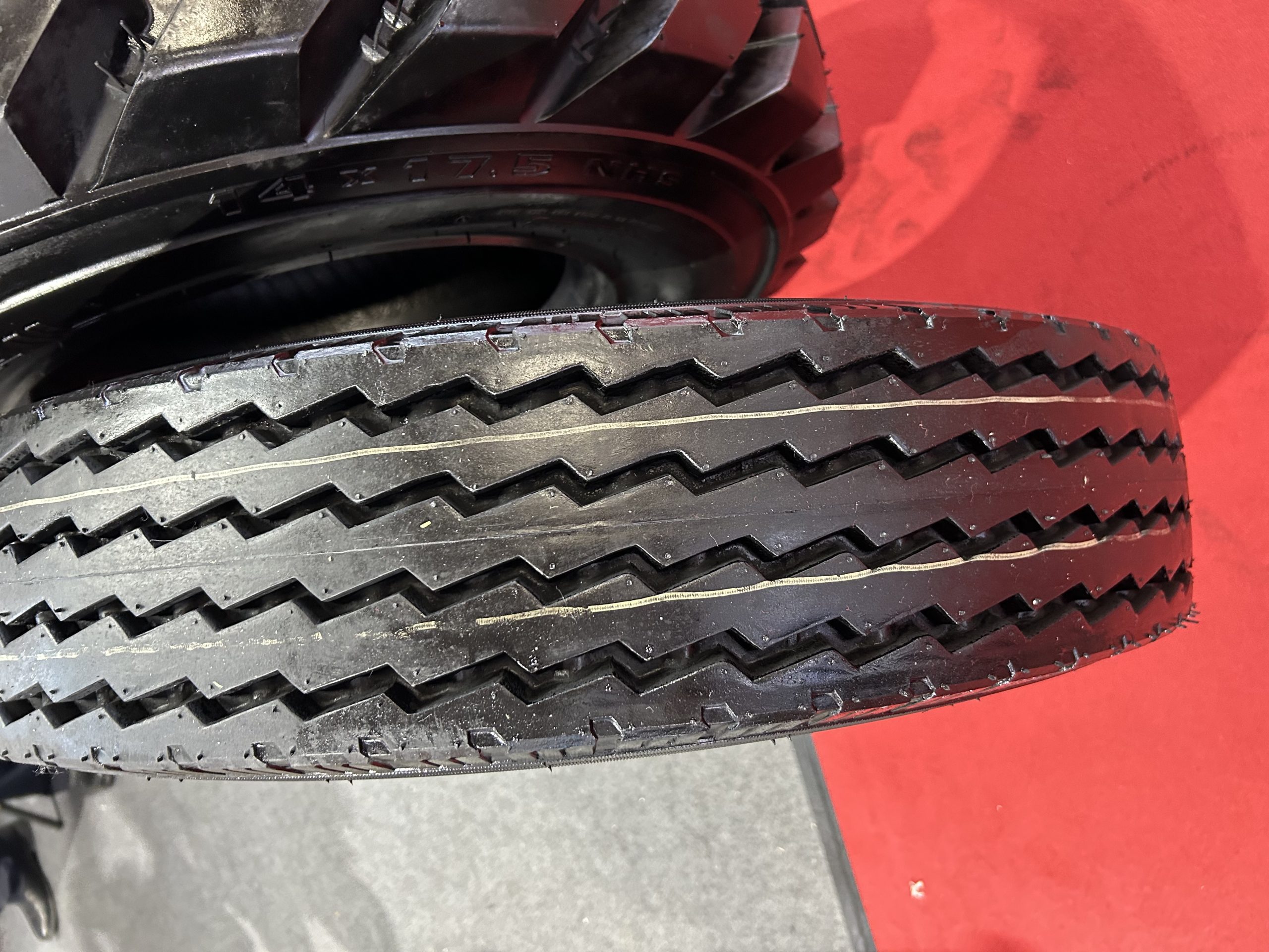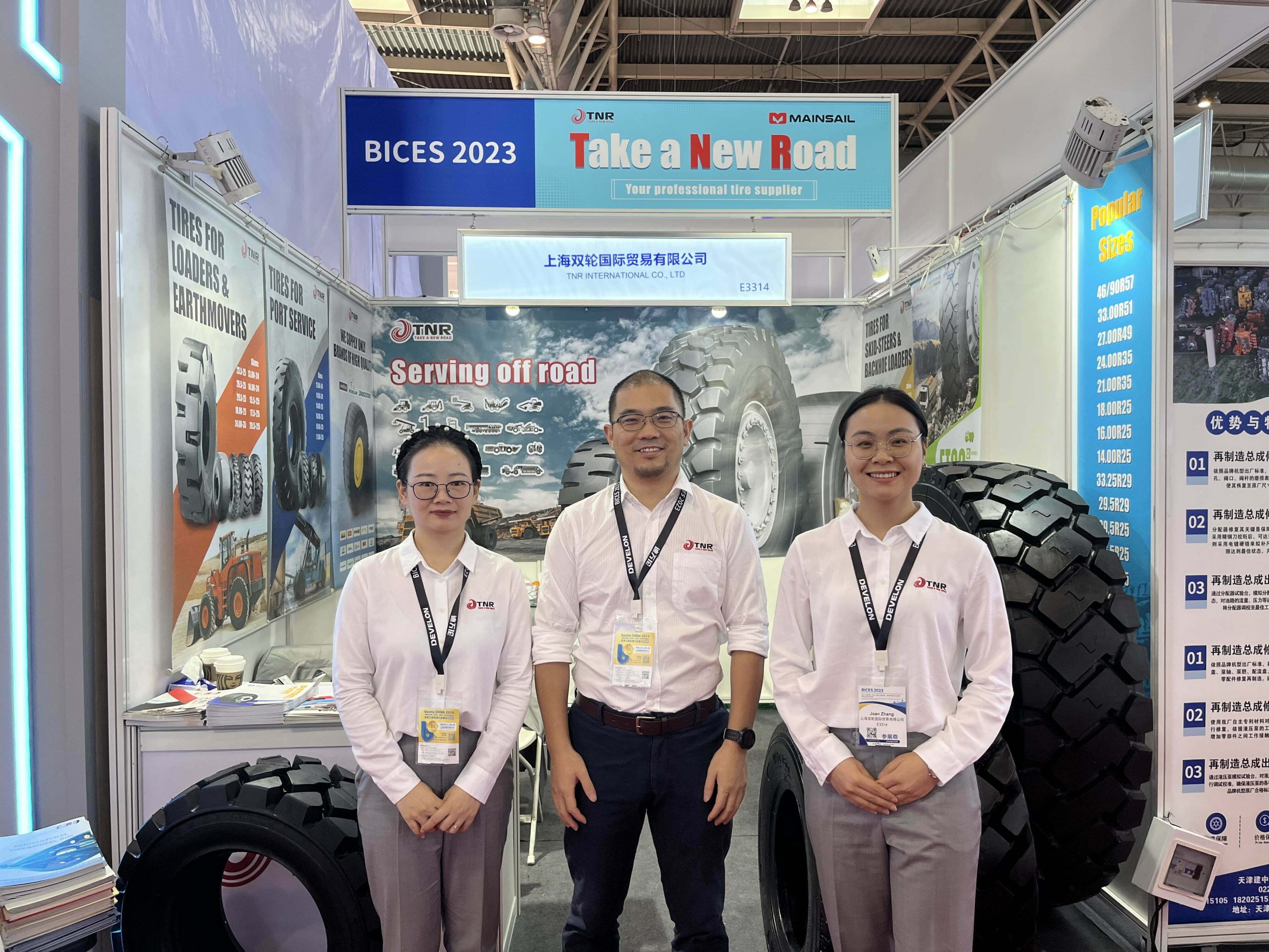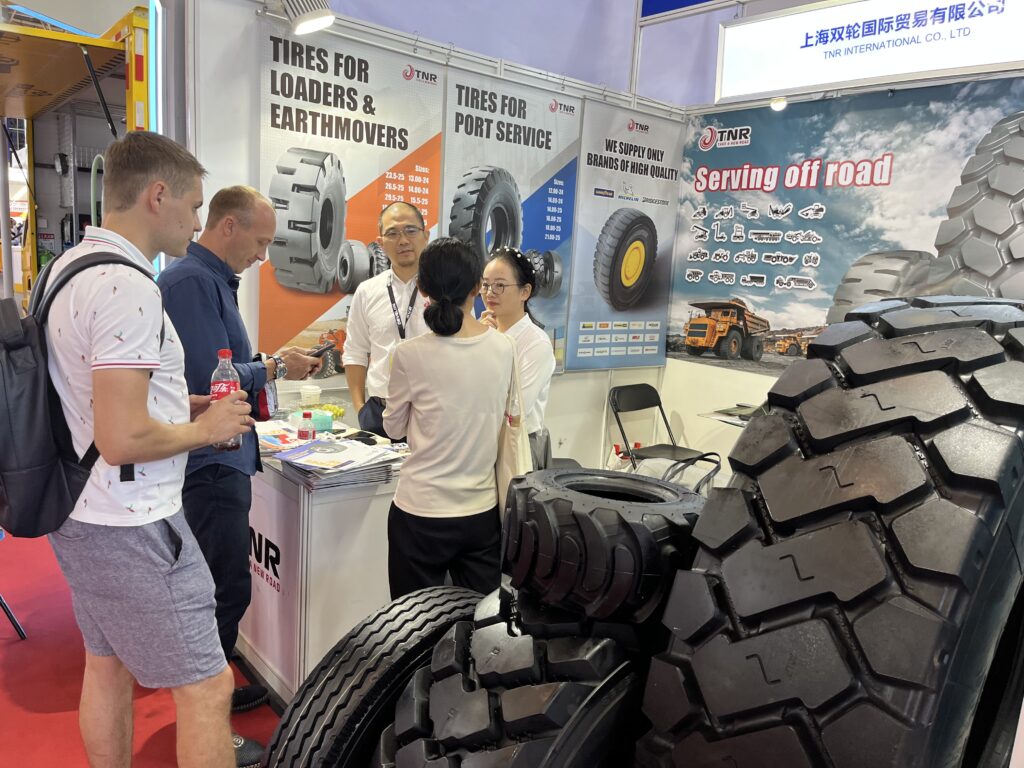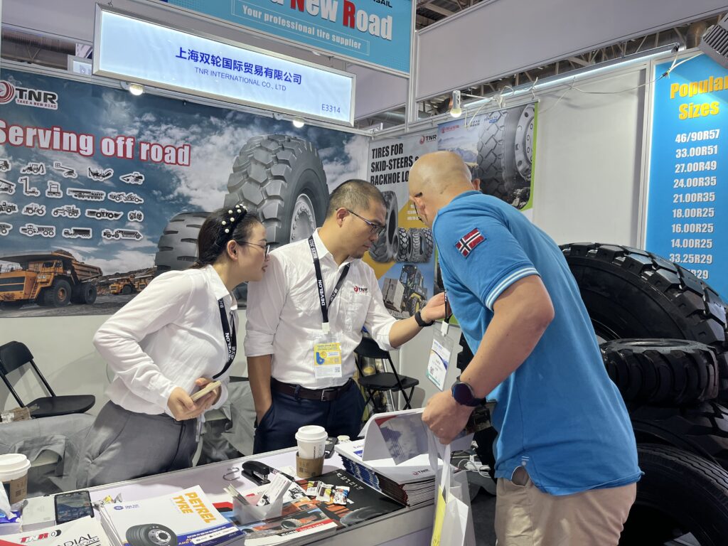 As a professional tire supplier, TNR showcased five tires with distinct characteristics. They are 16.00R25, 14-17.5, 10-16.5, 18×8.5-8, 7.50-16.