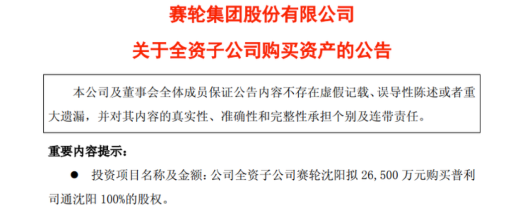 On July 14th, Sailun Tire (601058.Shanghai Stock Exchange) announced that its wholly-owned subsidiary, Sailun (Shenyang) Tire Co., Ltd. (Sailun Shenyang), will acquire 100% equity of Bridgestone (Shenyang) Tire Co., Ltd. (Bridgestone Shenyang) from Bridgestone (China) Investment Co., Ltd. for RMB 265 million. Both parties signed the Equity Transfer Agreement on the same day.