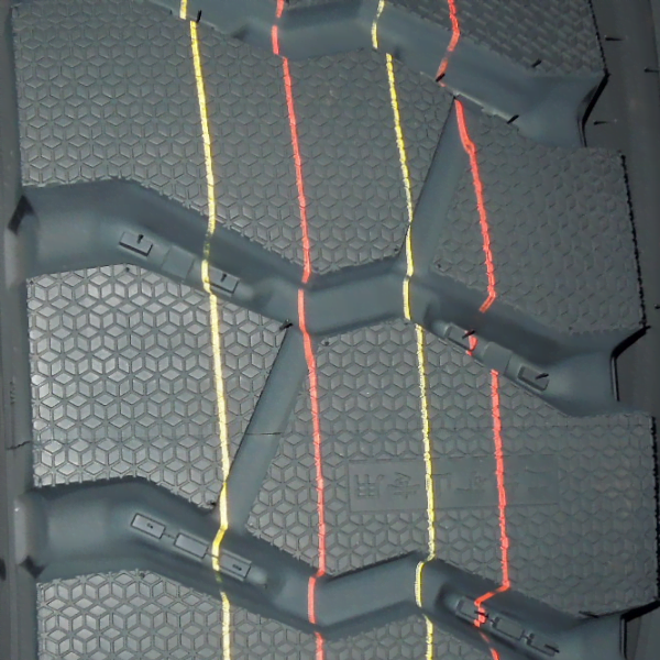 Interlaced reinforcing rib design at the pattern block bottom provides better tear resistance and anti-puncturing performance; Stone emitter at the bottom of grooves protects tire carcass effectively.