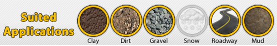 • traction tread with deep stepped self-cleaning lugs 3 to 4 times deeper than pneumatic