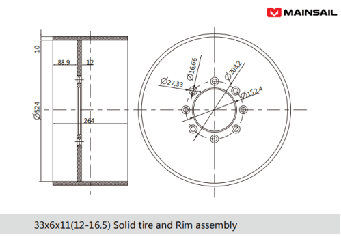 Different from pneumatic tire, the solid tire body is solid, they do not need steel cord as a framework and inflate air in the tire, either. Thus no inner tube or inner airtight liner inside of the skidsteer solid tire.