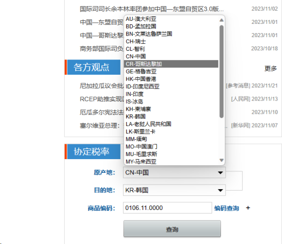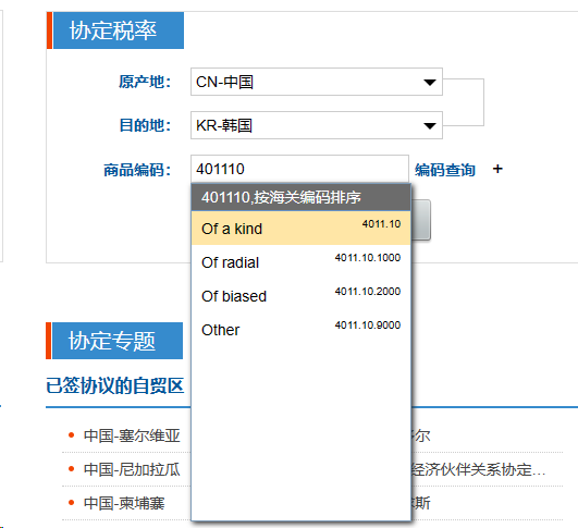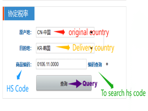 Visit the website http://fta.mofcom.gov.cn/ and you’ll see the query interface shown in the following image