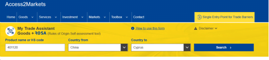 Please fill in the information, e.g. HS code, country of origin, country of delivery,then click “Search”.