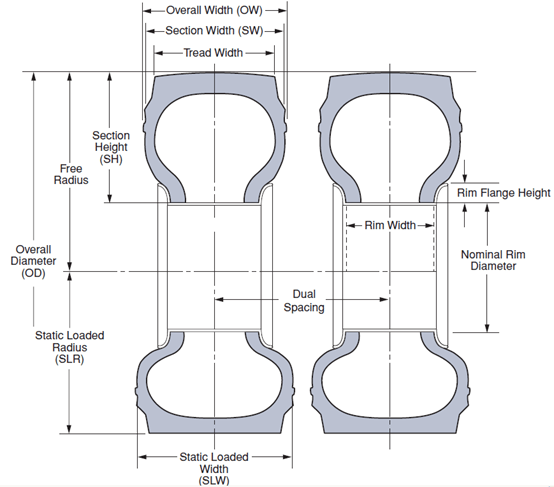 “Overall Diameter” is twice the section height of a new tire, plus the nominal rim diameter, including 24-hour inflation growth.