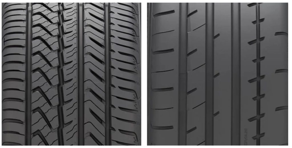 A UHP All-Season Tire (Left) vs. to a UHP Summer Tire (Right)